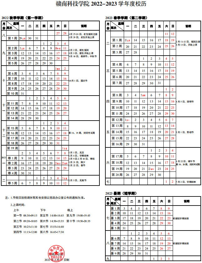 世界杯2026官方网站2022-2023学年度校历