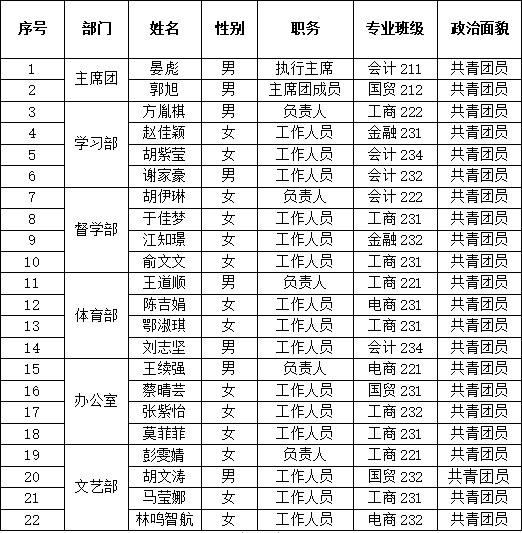 2、员工会工作人员名单展示如下图: