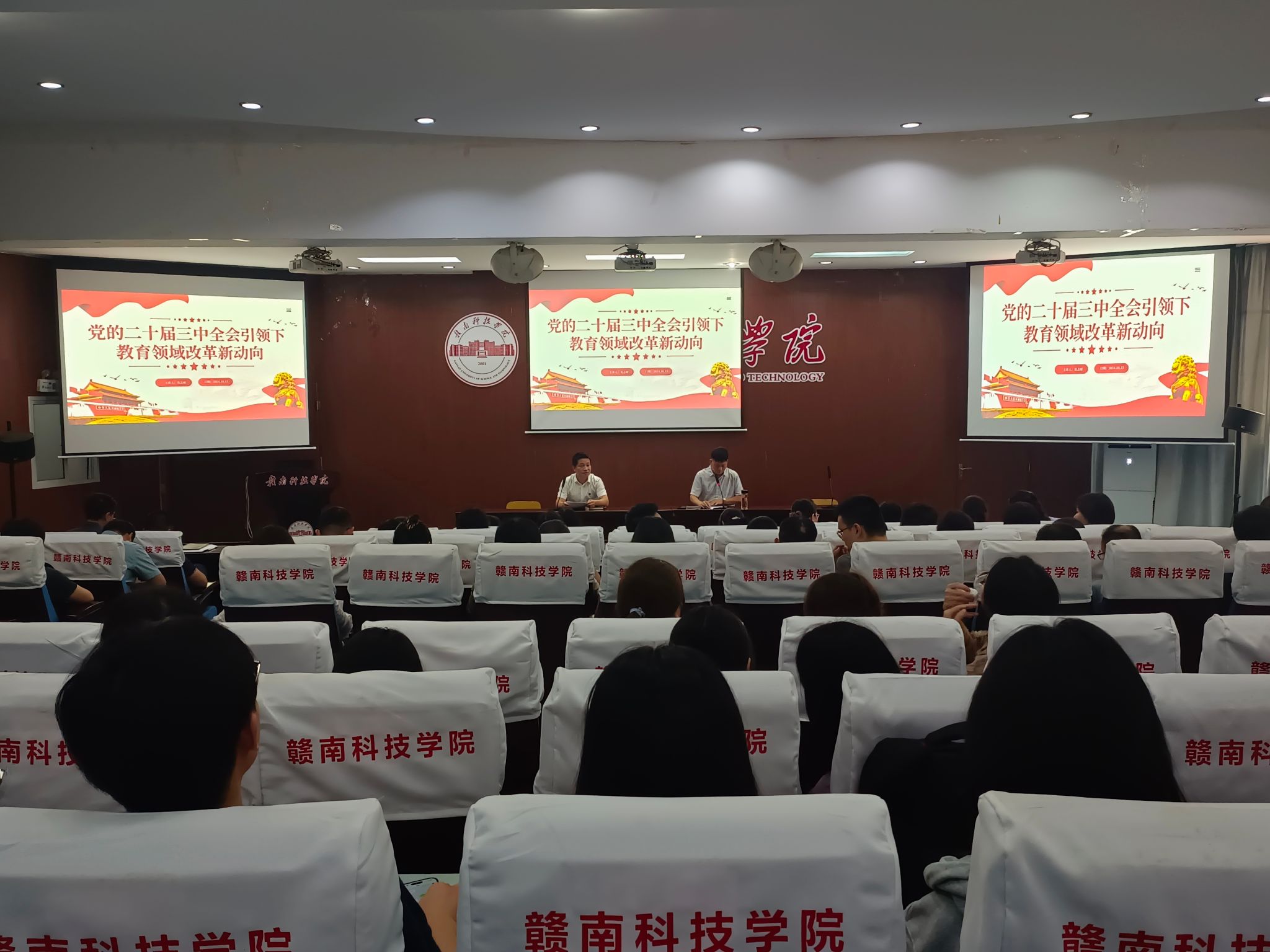 本网讯:10月15日下午,为进一步发挥先进典型的示范引领作用,公司党委邀请2024年江西省“新时代赣鄱先锋”葛志财老师在新民楼报告厅作题为《党的二十届三中全会引领下教育领域改革新动向》的专题报告,也作为公司党委“初心讲堂”的第二讲。公司党委书记肖永鸿、领导班子成员、全体教职工及员工第一、第二党支部全体同学参加。报告会由肖永鸿主持。