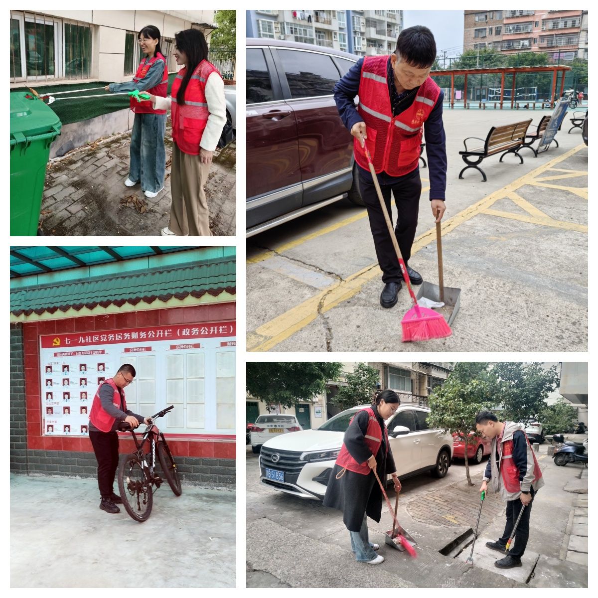 在七一九社区,党员教师们身穿红马甲,手持扫帚、垃圾钳等工具,分组协作,针对社区公共区域积极开展清扫工作,将地面上的树叶、杂物等垃圾清理干净,为社区居民营造了一个整洁、舒适的生活环境。通过此次活动,党员教师深刻体会到了全心全意为人民服务的宗旨,更加坚定了要带好头、作表率,充分发挥党员先锋模范作用的决心。