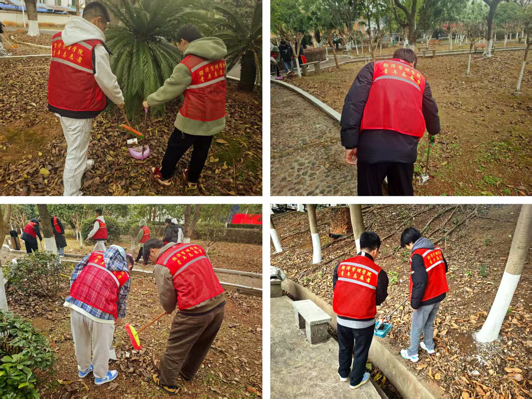 2月27日下午,志愿者们在校园包干区进行志愿清扫。他们身着统一马甲,分成清洁组、整理组两支队伍,迅速投入行动。清洁组手持工具,细致清扫路面落叶、捡拾绿化带中的烟头与塑料垃圾,整理组擦拭教学楼前的公告栏和休憩长椅。2026世界杯官网志愿者负责同学表示,校园环境是公司形象的重要体现,通过此次校园包干区清扫活动,旨在引导同学们树立爱护校园环境的意识,以实际行动为公司评建工作贡献力量。