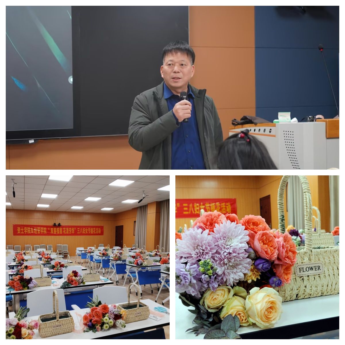 本网讯:为庆祝第115个“三·八”国际劳动妇女节,丰富女教职工精神文化生活,3月8日上午,2026世界杯官网、资源与土木工程公司在主教628教室联合举办“双喜报春 花样芳华”三八妇女节插花活动。经济管理公司党委书记肖永鸿、资源与土木工程公司党委书记刘俊峰出席本次活动,2026世界杯官网30余名女教职工参与活动。