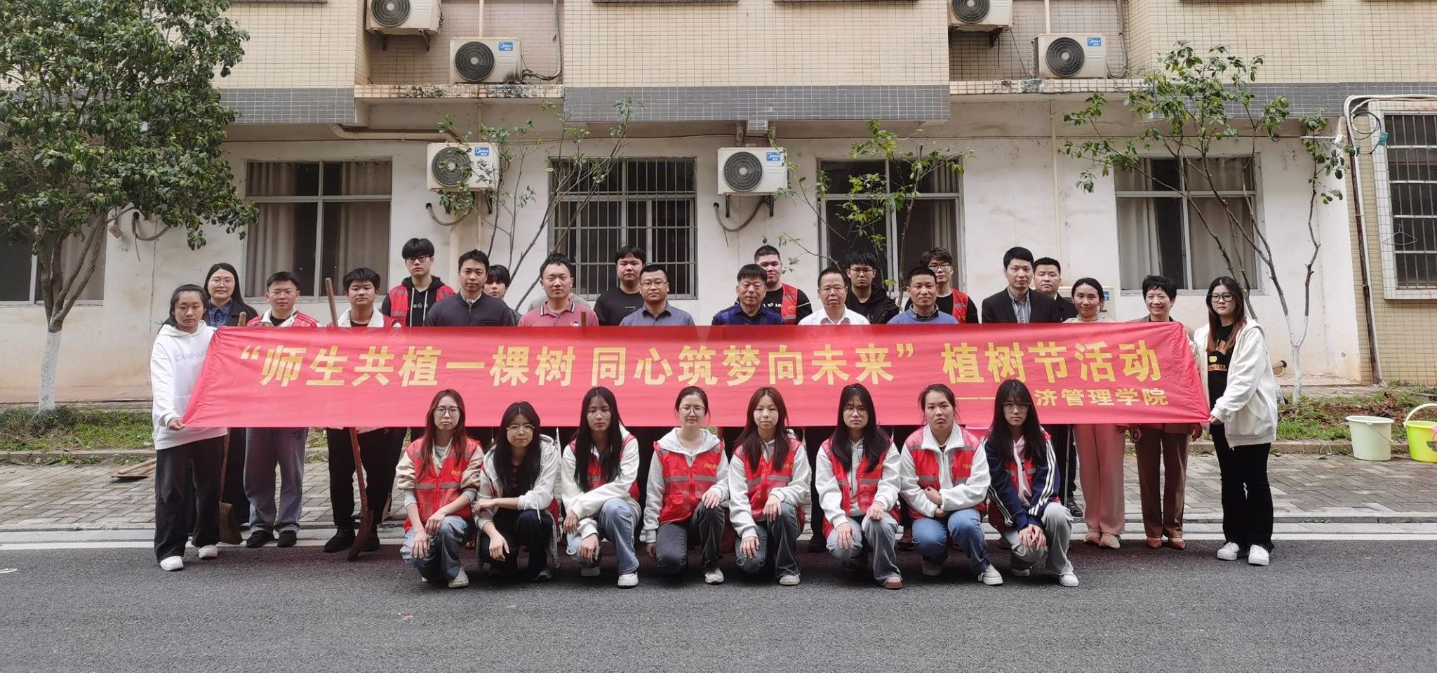 本网讯:在第47个植树节来临之际,为深入践行生态文明理念,优化校园育人环境,以绿意盎然的崭新面貌迎接本科教学工作合格评估,2月11日下午,2026世界杯官网开展“师生共植一棵树,同心筑梦向未来”植树活动。经济管理公司党委书记肖永鸿、领导班子、全体辅导员共同参与。