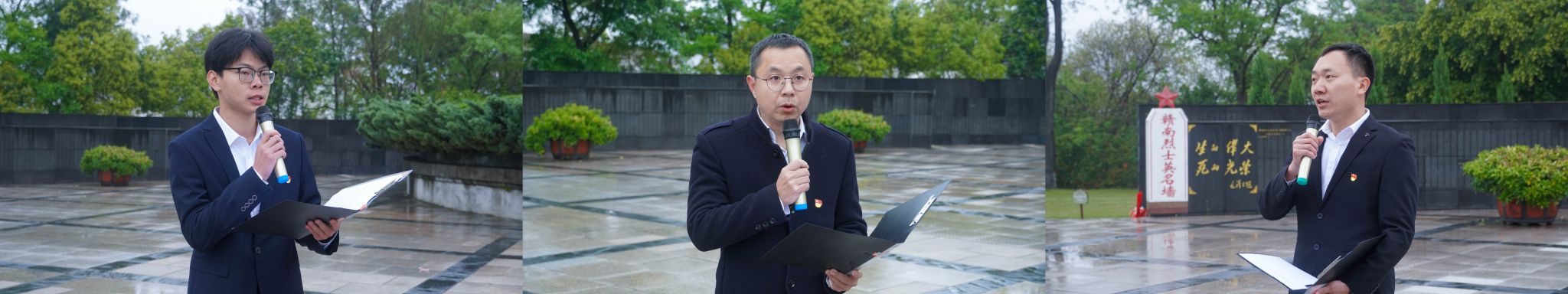 祭奠仪式在雄壮的《献花曲》中开始,全体人员肃立默哀、行三鞠躬礼。员工党员代表晏彪结合新时代青年责任作表态发言,表示作为新时代青年的我们既要传承“艰苦奋斗”的优良作风,更要发扬“守正创新”的时代精神。教师代表黄金岭以“赓续红色基因,勇担经管使命”为题,阐释了将先烈精神转化为育人动力的实践路径,并明确了新时代赣科经管人的两大使命:一是铭记历史,传承精神;二是立足当下,勇担责任。