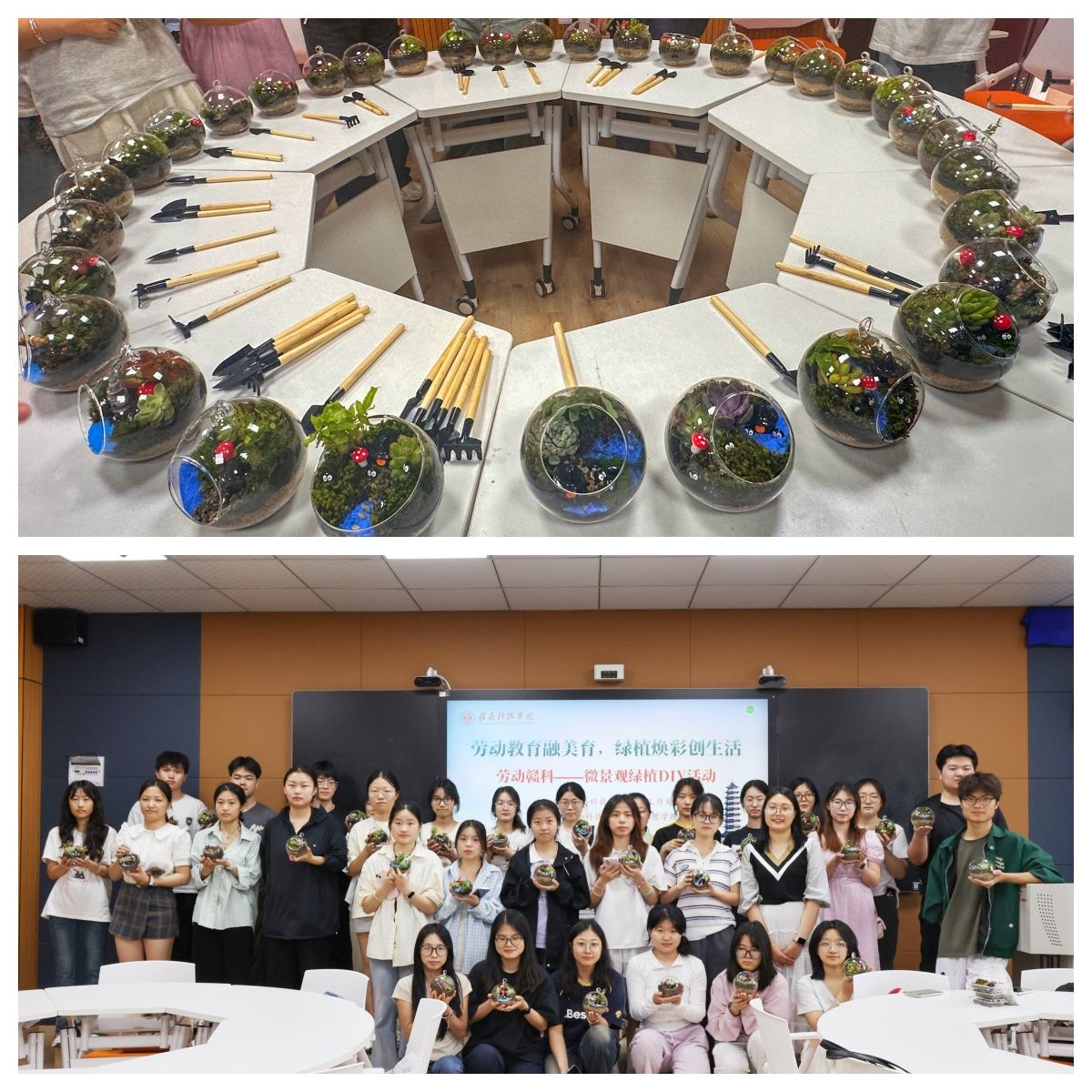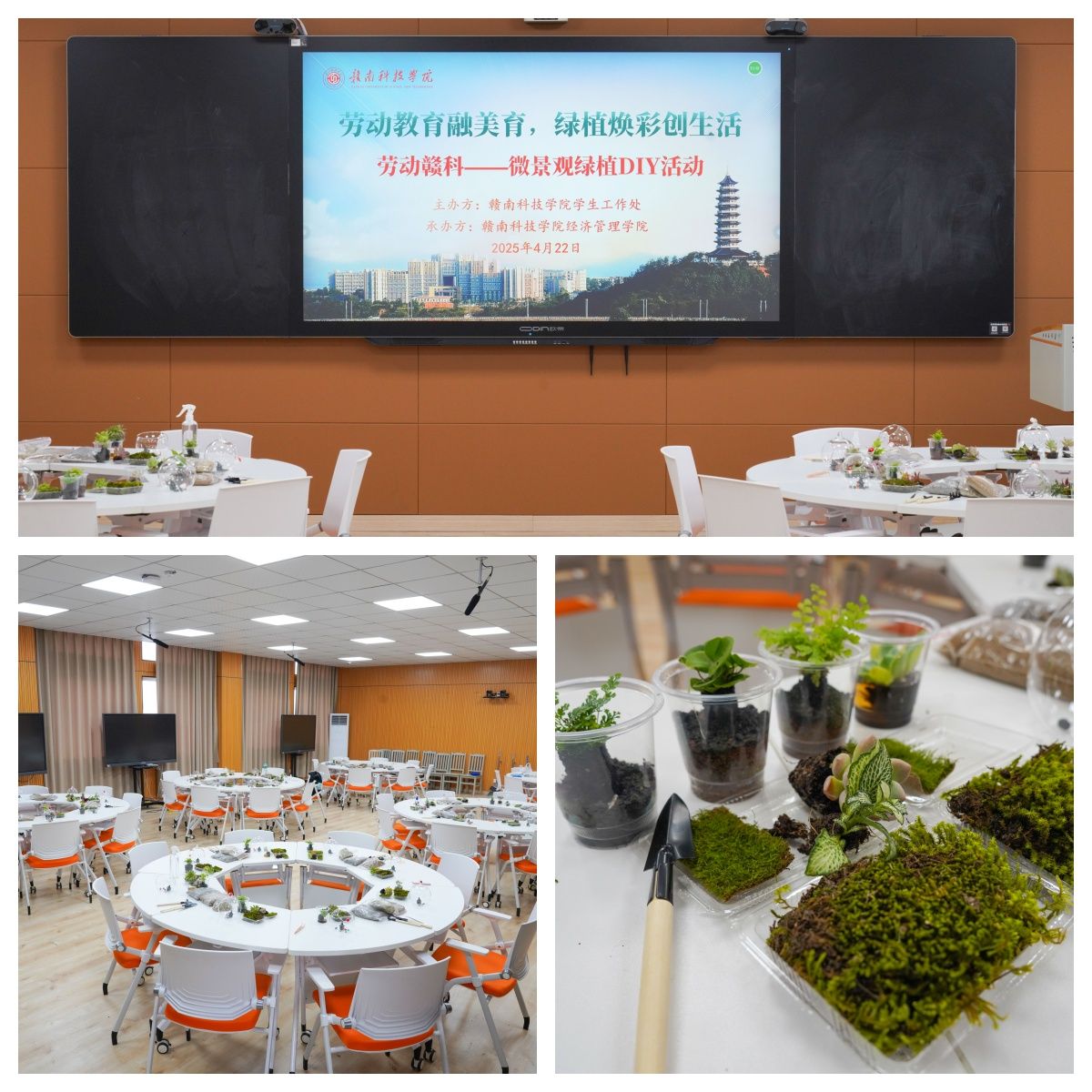 本网讯:为践行“五育并举”教育理念,促进员工全面发展,4月22日下午,公司于崇善楼Z629教室开展“劳动赣科”老员工实践成长计划之植物微景观制作活动。公司40余名师生参与此次活动。
