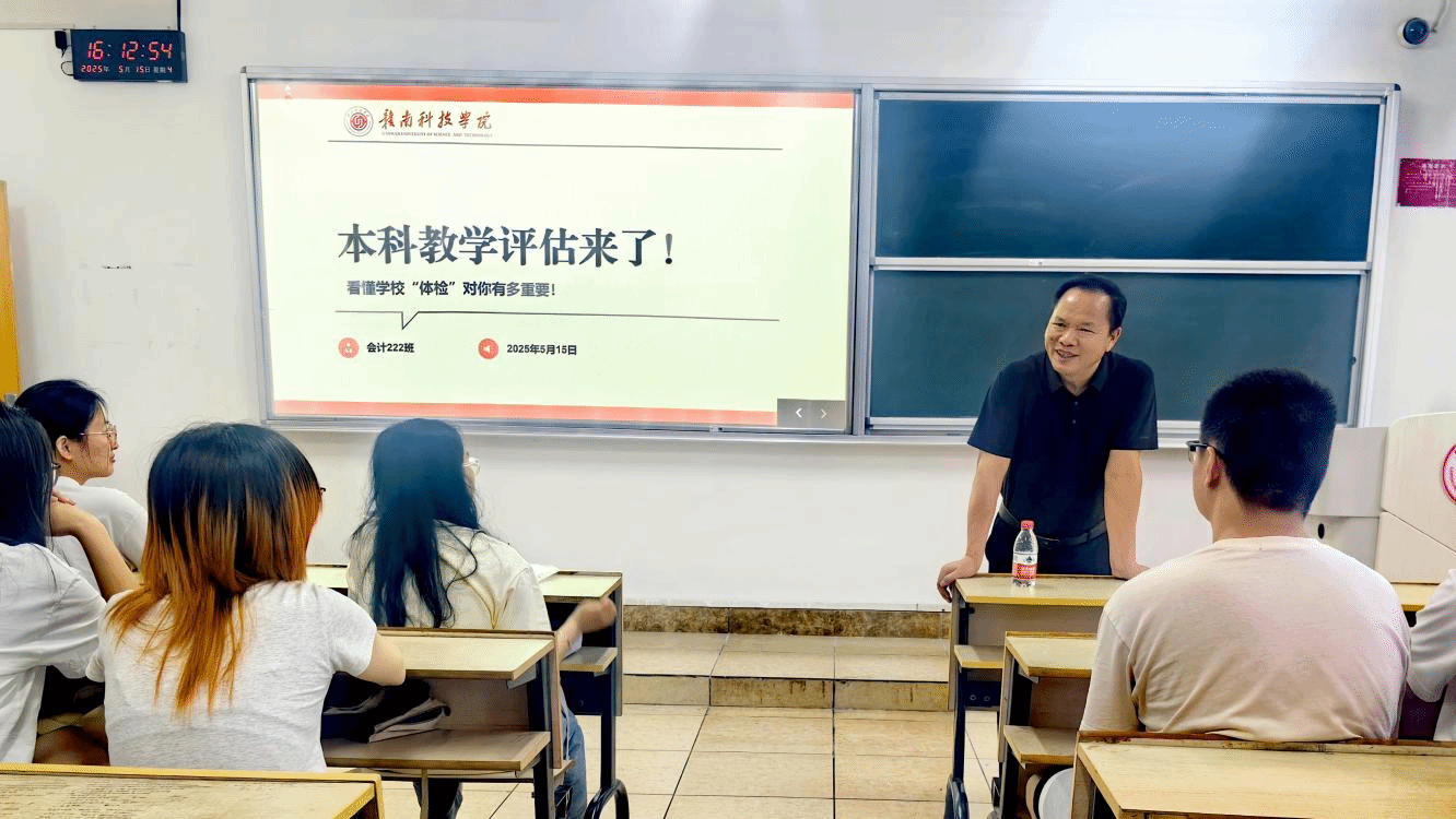 陈文新围绕“迎接本科教学评估”这一主题,他对同学们提出了三点殷切期望:一是要高度重视教学评估工作,秉持实事求是的态度,为赣科的发展贡献自己的一份力量。二是要严守校规校纪,在学习和日常生活中以更高的标准严格要求自己,养成良好学习和行为习惯,为营造优良的校园风气添砖加瓦。三是要关心关爱身边同学,在日常学习和交往中珍惜相处时光,当同学遇到困难时及时沟通并提供帮助,携手共进,共同成长。他特别强调,同学们要热爱学习、热爱生活,不忘初心,以更加饱满的精神面貌为公司本科评估贡献青春力量。