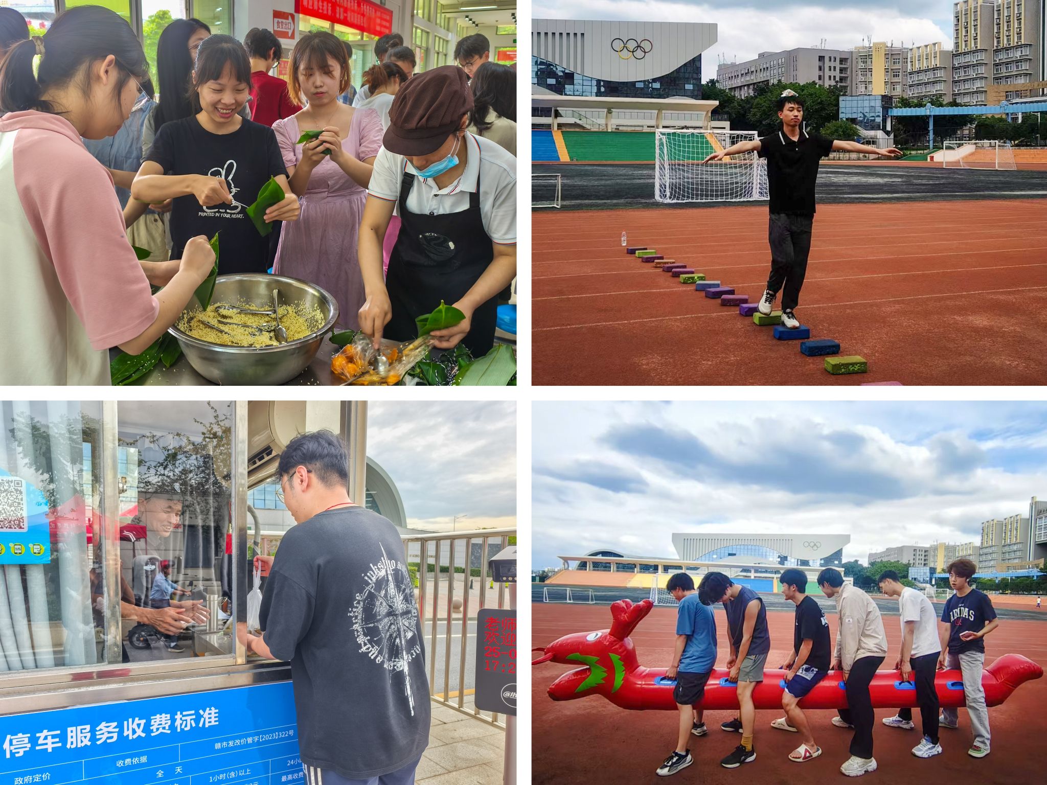 活动现场,食堂一楼馨芳园工作人员帮助员工处理食材,示范包粽技艺,粽叶折叠间,糯米与馅料在娴熟手法中化作精巧粽身。员工们分组动手实践,虽手法青涩却热情洋溢,但始终怀揣着对民俗文化的热忱,在相互交流中探寻传统工艺的奥秘。制作结束后,员工们携带亲手包制的粽子,向坚守工作岗位的保安叔叔、保洁阿姨等送上节日问候。此次活动还设置多元趣味环节:诗词问答与套圈游戏相映成趣,参与者在文化互动中深化对端午的认知;操场上,旱地龙舟赛的协作呐喊与粽子运送挑战的竞技热情此起彼伏,将节日氛围推向高潮,粽叶清香与欢声笑语共同勾勒出一幅温馨美好的校园端午图景。