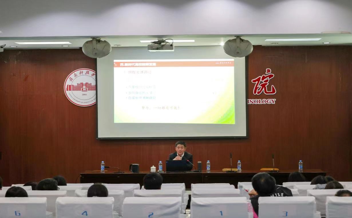 讲座中,何锦龙从“师者,所以传道授业解惑也”引出作为新时代教师要践行立德树人根本使命,教师要在使命担当中求成长。接着,分别从新时代高等教育形式、新时代高校教师使命、新时代教师教学规范以及新时代高校教师发展四个方面进行剖析。在第一方面,从高等教育外部形势与内在改革的角度,并结合党的二十大精神与习总书记关于高等教育的重要论述详细阐述公司的发展机遇;在第二方面,从世界高等教育发展进程与党和国家的需要角度,阐明一名高校教师的根本使命与时代使命;在第三方面,从教育的四个基本要素与国家标准的角度,明确提出教师应遵守新时代教师职业行为十项准则,并积极坚守公司的各项规章制度;在第四方面,从发展路径、岗位要求和能力基础等三个角度,仔细分析新时代高校教师的发展方向。