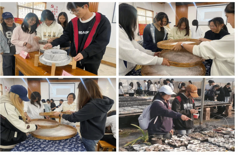 随后的非遗体验与手工实践环节,让学子们收获满满。珍珠粉制作体验区里,大家跟着实践导师学习磨浆、筛制等工序,看着细腻的米浆经过层层过滤逐渐变成雪白的粉团,纷纷为传统技艺的独特魅力点赞。多肉种植大棚中,学子们认真学习多肉植物生长习性,挑选心仪的植株与花盆,一步步完成填土、定植、装饰,打造出专属多肉盆栽。“能把自己种的多肉带回家,太有成就感了!”一名学子捧着亲手栽种的盆栽笑言,不仅学会了种植技巧,更收获了实践之旅的专属纪念。