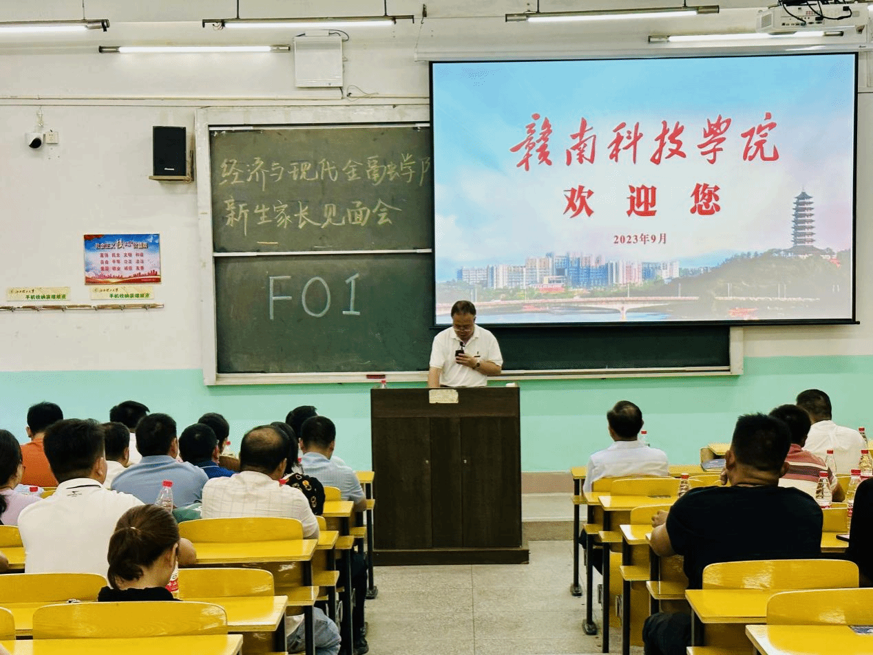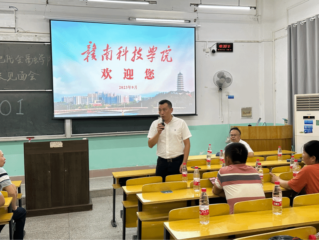 本网讯:为促进家校联动,充分发挥家校教育合力,9月8日晚上,经济与现代金融公司在龙飞主楼F01教室召开2023级新生家长见面会。公司党委副书记、董事长李国金,过渡期管理委员会委员薛香恒,公司教学负责人王波及各教研室主任出席了本次会议。会议由公司学工负责人梁文学主持。