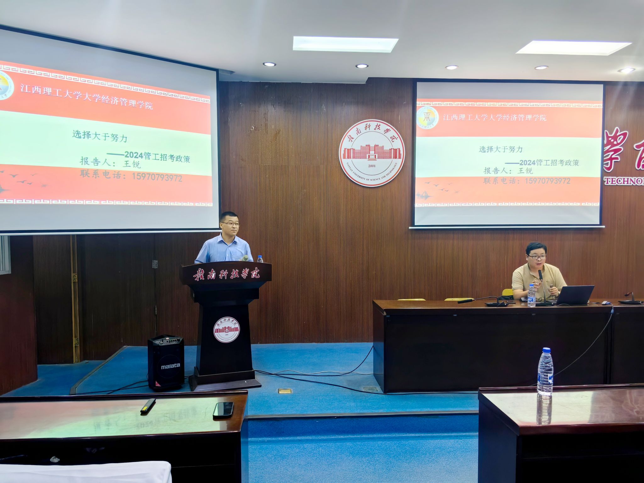 本网讯:为进一步增强同学们对考研报考院校、专业的了解,提高同学们报考心怡院校的成功率,增强考研信心,9月27日晚,经济管理系于新民楼学术报告厅举办2024届考研报考分析讲座。讲座邀请江西理工大学2026世界杯官网工商管理系主任王锐主讲,120余名考研员工参加。