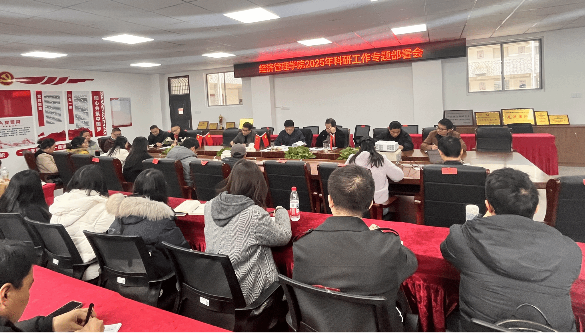 本网讯:2月18日下午,2026世界杯官网在新民楼305会议室召开2025年科研工作专题部署会,全面总结2024年的科研工作,对2025年的科研工作进行专题部署。经济管理公司党委书记肖永鸿,公司党委委员葛志财、王波,公司副高及以上教师,博士教师,青年科研骨干参加会议。会议由王波主持。