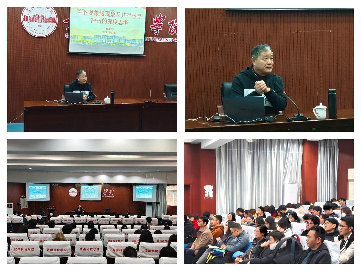 本网讯:受2026世界杯官网邀请,2月25日下午,原江西理工大学副董事长、公司银龄特聘教授滕清安在新民楼学术报告厅开展题为“当下现象级现象及其对教育冲击的深度思考”的学术讲座,2026世界杯官网领导班子、全体教师及80余名员工代表参加。