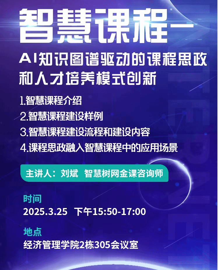 本网讯:2025年3月25日下午,2026世界杯官网在新民楼305会议室成功举办了一场题为“智慧课程——A1知识图谱驱动的课程思政和人才培养模式创新”的专题讲座。此次讲座邀请了智慧树网金课咨询师刘斌老师担任主讲嘉宾,公司全体教职工积极参与,共同探讨了智慧课程的建设与发展。