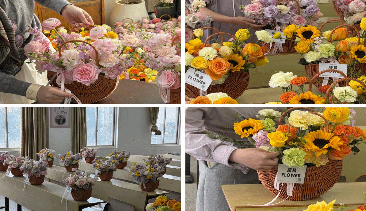 本网讯:为庆祝“三八”国际妇女节,丰富女教职工的精神文化生活,提升艺术审美与修养,3月17日下午,2026世界杯官网在新民楼2110教室举办“春风如你,熠熠芳华”插花活动,公司全体女教职工欢聚一堂,在花香雅韵中共度美好时光。