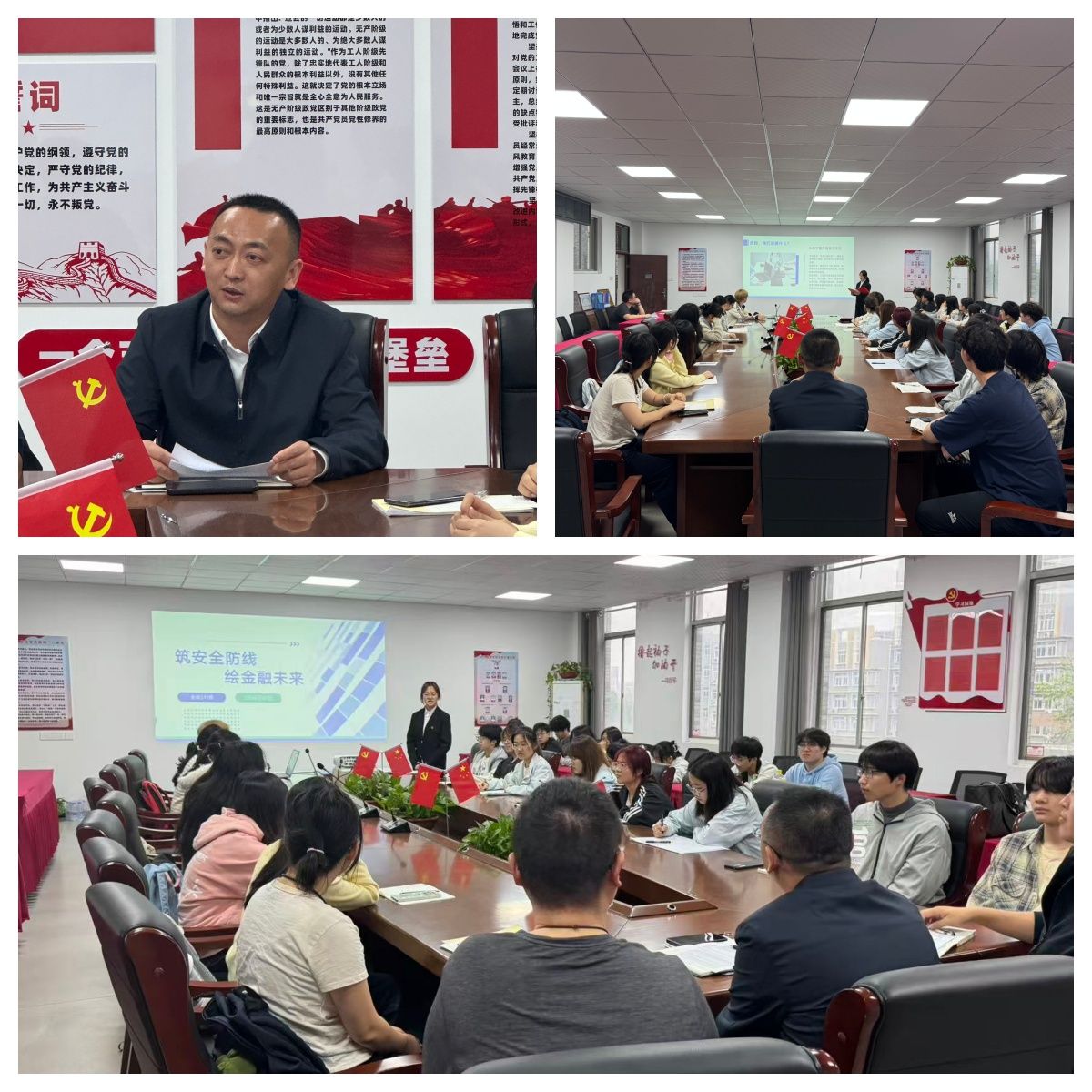 4月2日,经济管理公司党委副书记钟秋瓒参加金融241班“筑安全防线,绘金融未来”主题班会,围绕安全警示与生涯发展两大核心,为同学们开展指导。班会伊始,金融241班班长首先明确了本次班会的核心意义,围绕安全底线开展典型案例警示教育,聚焦生涯发展进行未来路径规划,引导同学们重视安全防范与专业成长的双向赋能。然后辅导员牛培结合典型案例开展安全警示案例研讨;班主任王瑞梅以学业与生涯视角,从学习深度、考研准备、就业策略、资源利用等方面分析交流。随后,钟秋瓒围绕生涯发展为同学们答疑解惑,强调金融专业学子需以学业为根本,明确价值追求,勉励同学们以安全为基、以学业为径、以价值为魂,珍惜大学时光,脚踏实地、稳步前行,努力成长为适配行业发展的高素质金融人才。