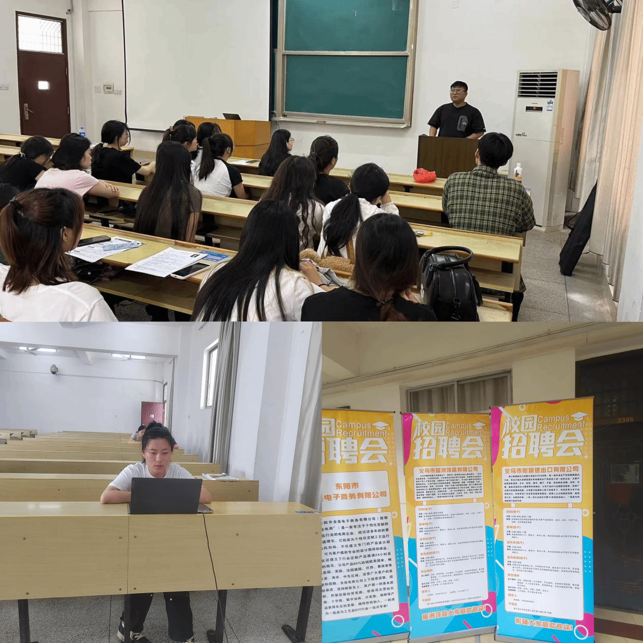 本网讯:6月22日下午,公司在新民楼2307教室举办电子商务专业专场招聘宣讲会。浙江义乌云盒子有限公司人力资源经理周涛、何凯,公司辅导员刘显成及40余名同学参加此次活动。
