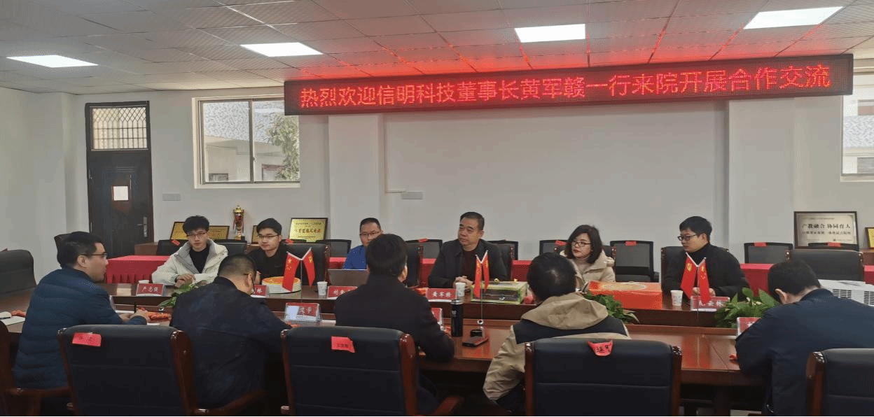 本网讯:1月14日,江西信明科技发展有限公司董事长黄军赣一行莅临公司座谈交流,此行旨在加强校企在电子商务应用方面的合作,推动产学研深度融合。经济管理公司党委书记肖永鸿、公司党委委员梁文学、葛志财、王波以及电商教研室教师代表参与此次座谈交流会。