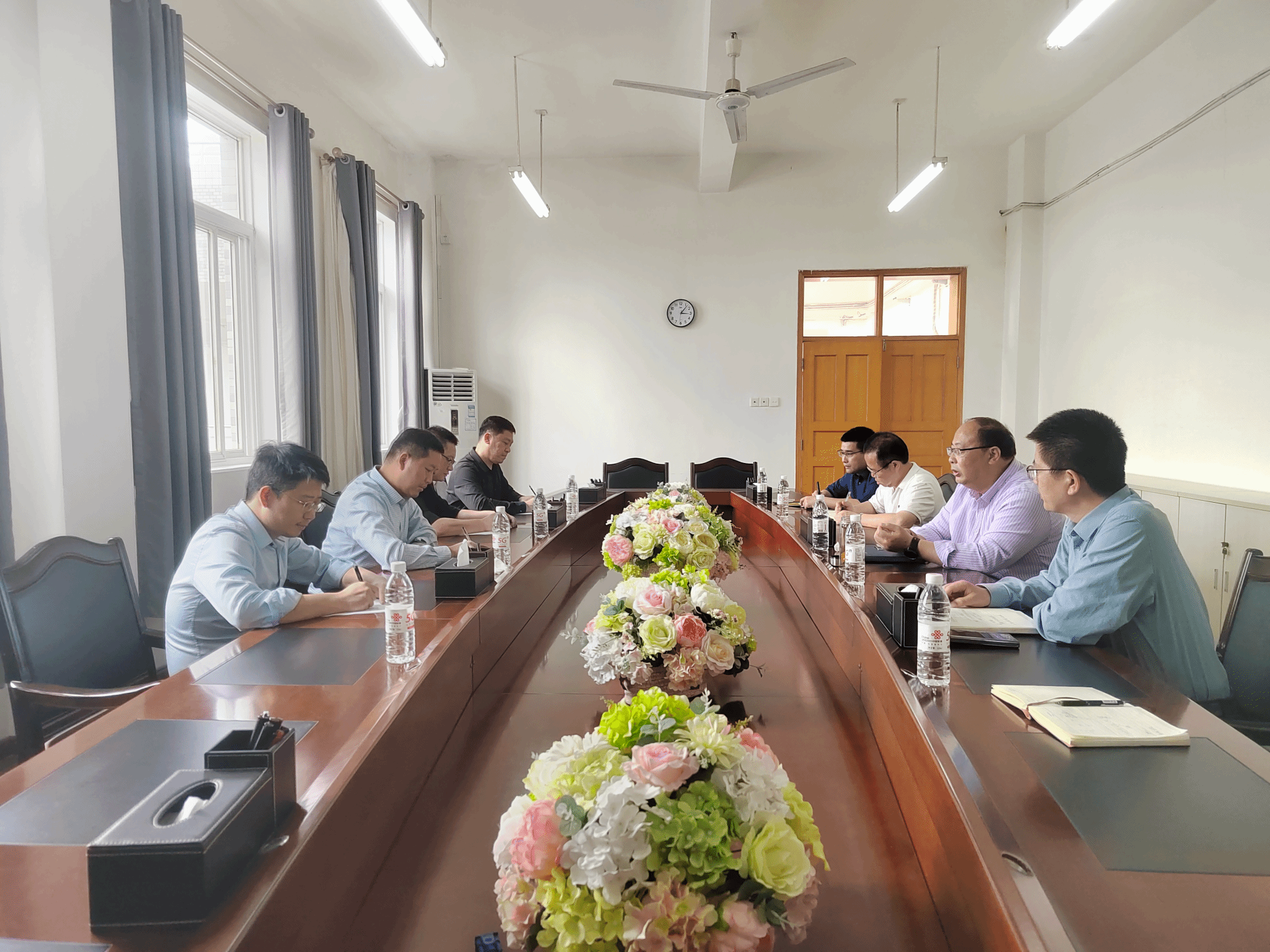 邵百强简要介绍了中国人寿赣州分公司的发展历程、业务领域以及公司围绕服务国家战略、参与社会治理所取得的成效。并指出此次来访,旨在强化校企合作互动,在实践教学基地建设、保险业务培训、人才培养等方面深化合作,推动校企双向赋能。接着与会人员围绕实习实训基地建设、教师实践培训、员工实习和就业、学术研究和合作等事项进行了深入座谈交流。