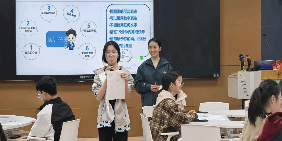 针对困难员工普遍存在的表达不自信、技能展示不突出等问题,培训还设置互动实践环节。员工们通过绘制《我的6维自我介绍图》并上台展示,逐步增强自我认知与表达勇气,现场气氛积极活跃。