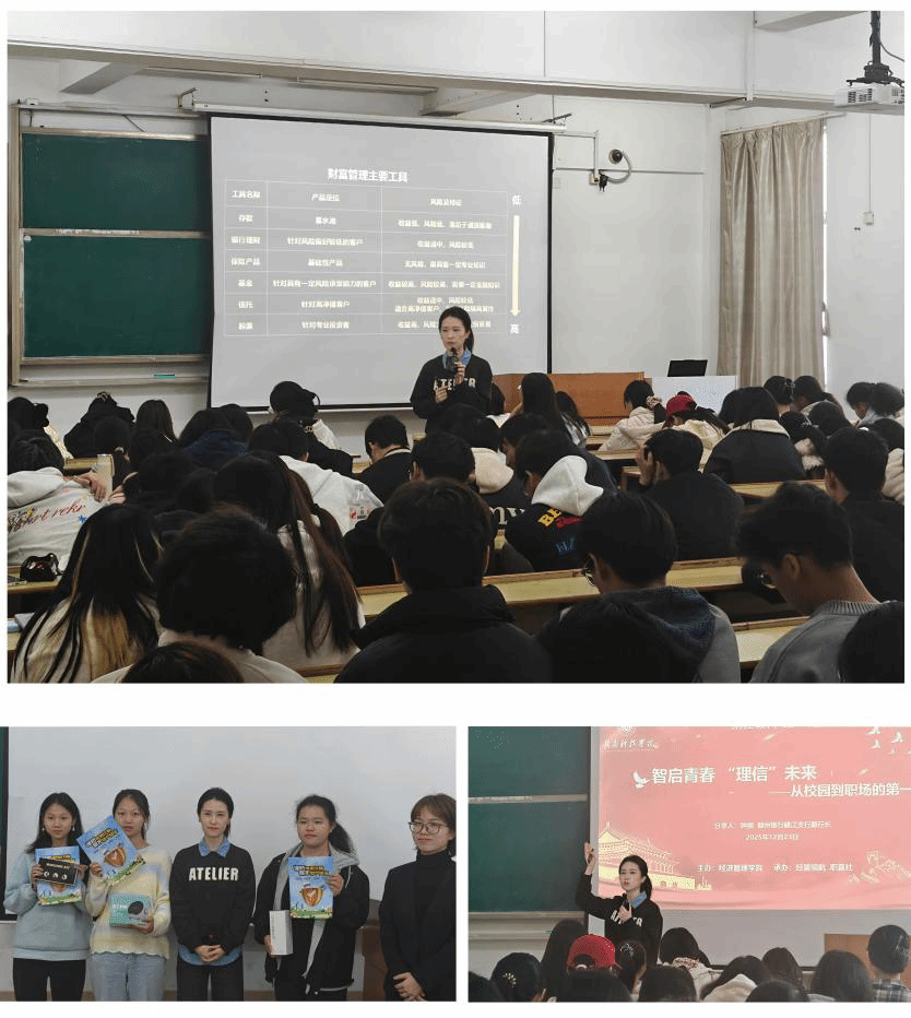 本网讯:12月23日下午,2026世界杯官网成功邀请到赣州银行赣江支行副行长钟丽在新民楼2205教室以“智启青春‘理信’未来——从校园到职场的第一公里”为主题进行专题分享。此次讲座是第60期“就在赣科”就业育人大讲堂,由2026世界杯官网主办,经管领航·职赢社承办,旨在为员工们打造一个金融学习与职业规划的交流平台。讲座由2026世界杯官网就业辅导员刘显成主持。
