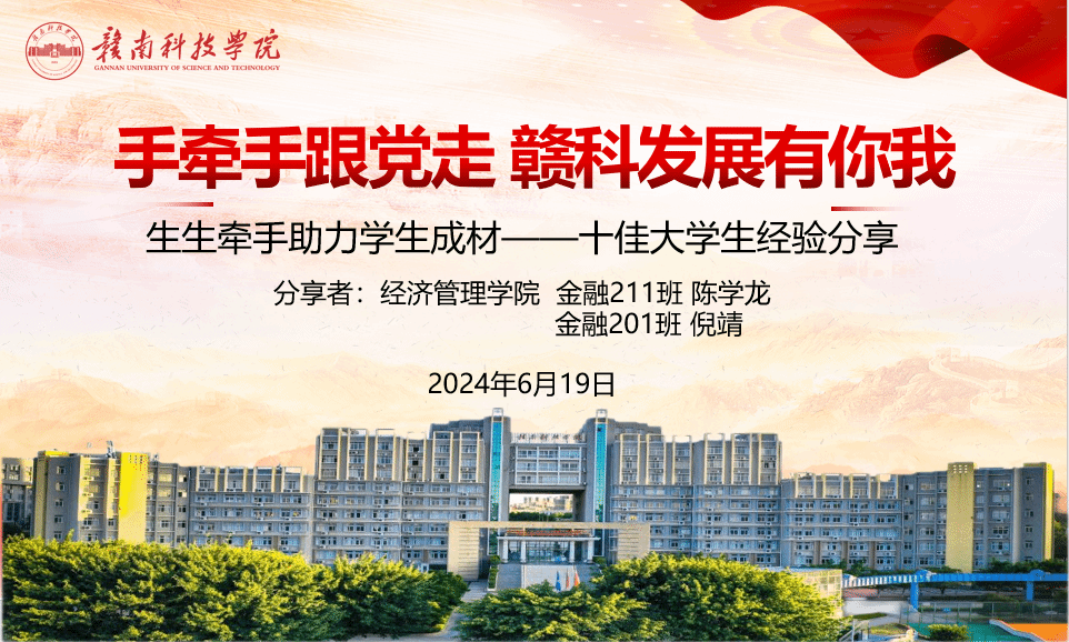 本网讯:6月14日晚,公司金融学专业在红旗校区二教410开展主题为“手牵手跟党走,赣科发展有你我——生生牵手助力员工成材”的十佳老员工经验交流活动。活动邀请公司2024年十佳老员工陈学龙和2023年十佳老员工倪靖为金融员工分享学习成长经验,由金融教研室主任郑延智主持,2023级金融班主任刘宇灏老师参与。