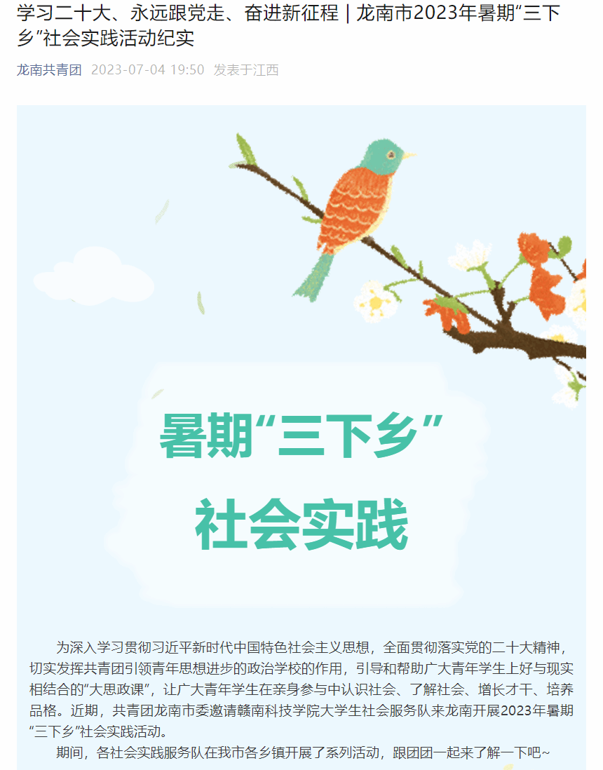 【龙南共青团】学习二十大、永远跟党走、奋进新征程|龙南市2023年暑期“三下乡”社会实践活动纪实