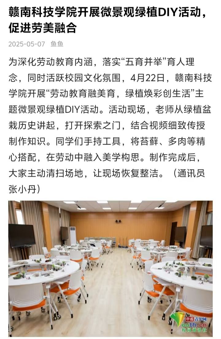 为深化劳动教育内涵,落实“五育并举”育人理念,同时活跃校园文化氛围,4月22日,世界杯2026官方网站开展“劳动教育融美育,绿植焕彩创生活”主题微景观绿植DIY活动。活动现场,老师从绿植盆栽历史讲起,打开探索之门,结合视频细致传授制作知识。同学们手持工具,将苔藓、多肉等精心搭配,在劳动中融入美学构思。制作完成后,大家主动清扫场地,让现场恢复整洁。(通讯员 张小丹)