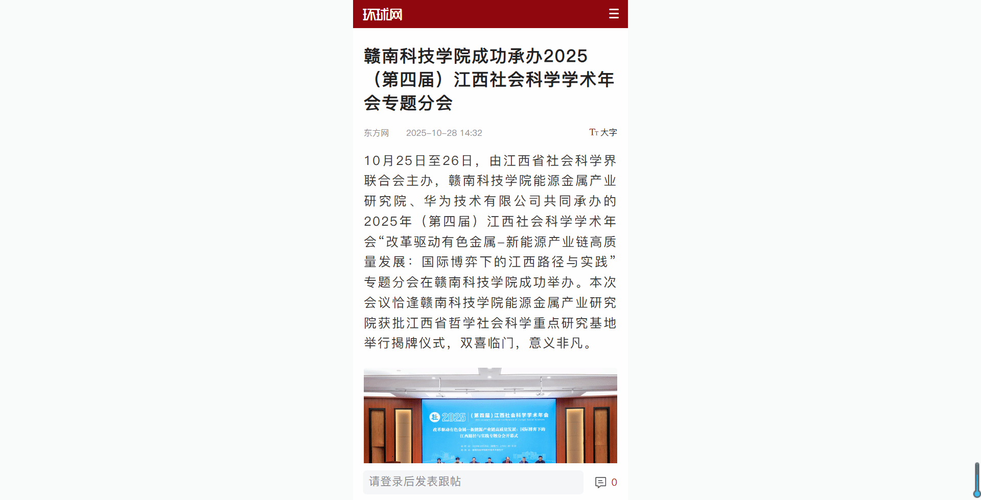 本网讯:10月25日至26日,由江西省社会科学界联合会主办,公司能源金属产业研究院、华为技术有限公司共同承办的2025年(第四届)江西社会科学学术年会“改革驱动有色金属-新能源产业链高质量发展:国际博弈下的江西路径与实践”专题分会在公司成功举办。本次会议恰逢公司能源金属产业研究院获批江西省哲学社会科学重点研究基地举行揭牌仪式,双喜临门,意义非凡。